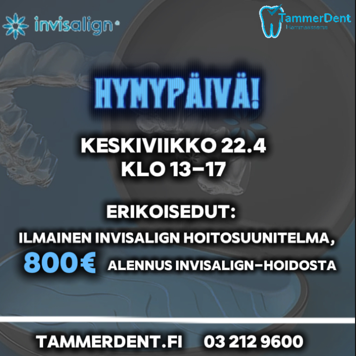 ✨Hymypäivän tarjous!✨. Tervetuloa ilmaiseen konsultaatioon ke.22.4. klo13-17 TammerDentiin- missä hymyäsi hoidetaan ammattitaidolla! 🦷. Olette lämpimästi tervetullut!😊. #invisalign #tampere #hammaslääkärissä ...